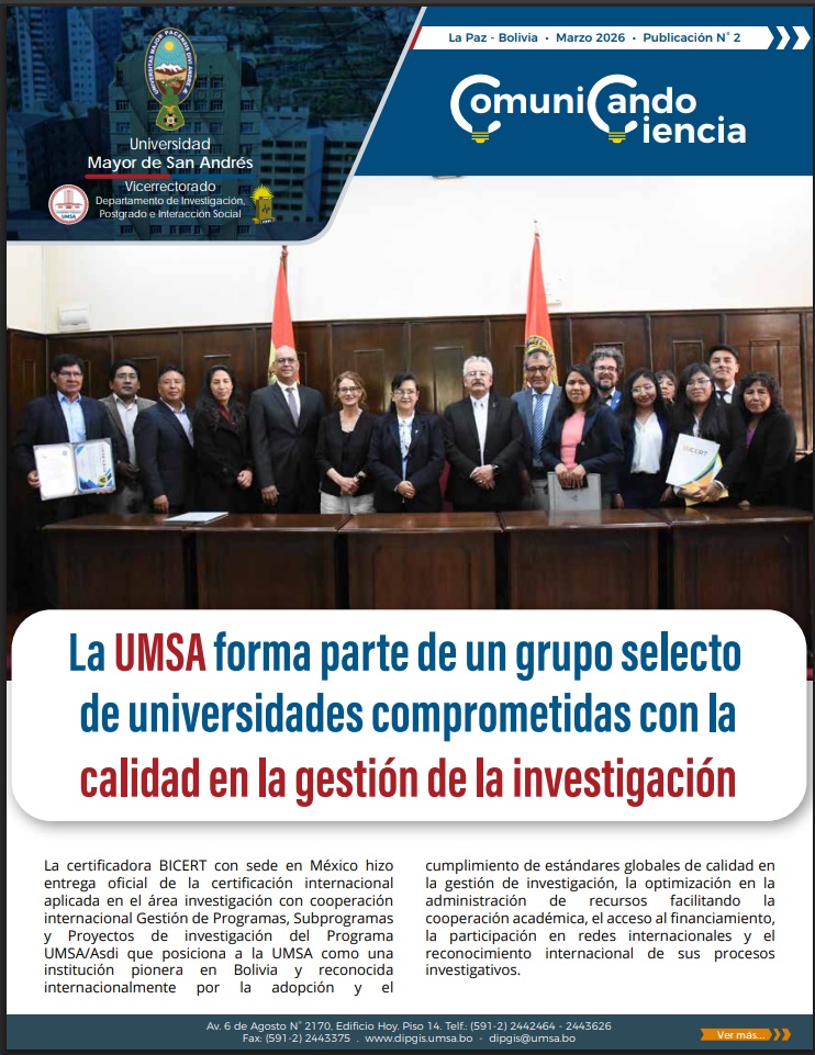 📢 𝐂𝐨𝐧𝐯𝐨𝐜𝐚𝐭𝐨𝐫𝐢𝐚 𝐚𝐛𝐢𝐞𝐫𝐭𝐚 | 𝐅𝐨𝐧𝐝𝐨𝐬 𝐂𝐨𝐧𝐜𝐮𝐫𝐬𝐚𝐛𝐥𝐞𝐬 𝐈𝐧𝐯𝐞𝐬𝐭𝐢𝐠𝐚𝐜𝐢𝐨́𝐧 𝐲 𝐂𝐨𝐦𝐮𝐧𝐢𝐜𝐚𝐜𝐢𝐨́𝐧 𝐂𝐢𝐞𝐧𝐭𝐢́𝐟𝐢𝐜𝐚 𝟐𝟎𝟐𝟓La Universidad Mayor de San Andrés, a través del Departamento…